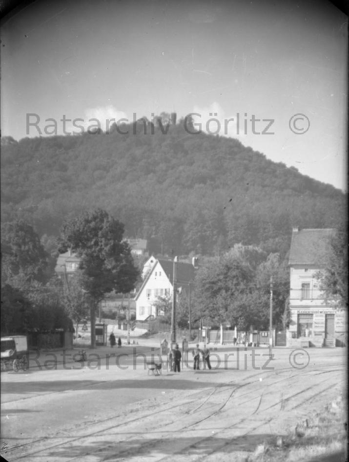 Blick zur Landeskrone von der Endstation der Straßenbahn