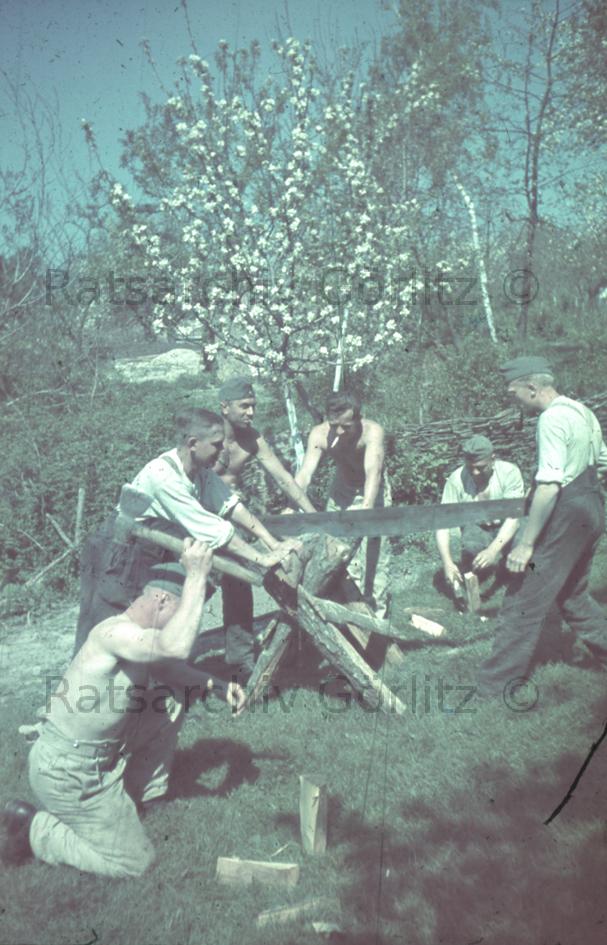 beim Holz sägen
