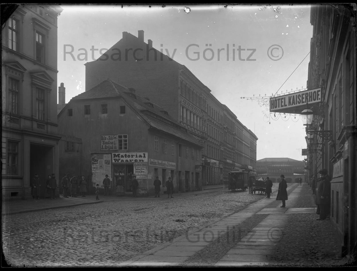 Berliner Straße 1885 - Blick zum Bahnhof mit Pferdebahn, Straße