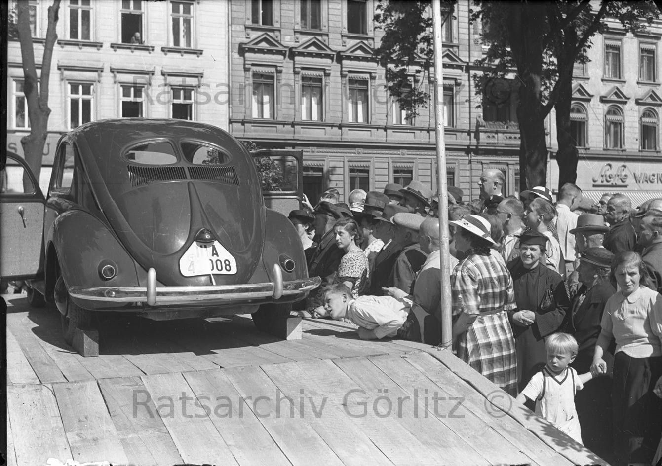 Präsentation des ersten VW Käfer auf dem Wilhelmsplatz