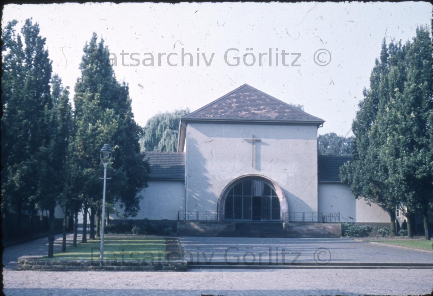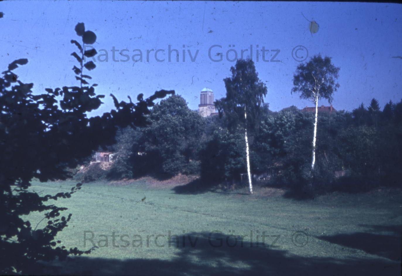 Stadt, Kreuzkirche, vom Pomologischen Garten gesehen