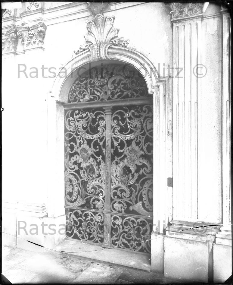 Gruft-Fenstergitter an der östlichen Mauer des Nikolaikirchhofes, Friedhof