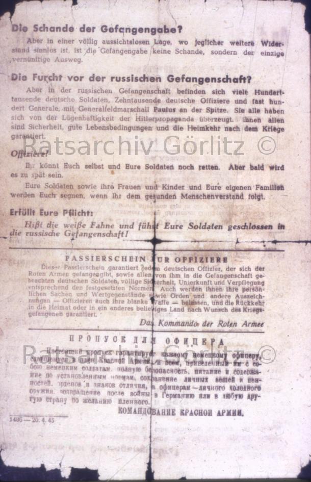 An die Offiziere der deutschen Wehrmacht, Raum Görlitz