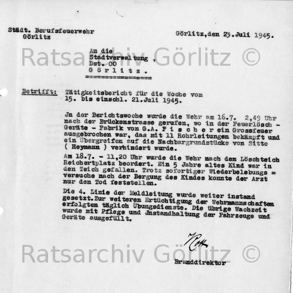 Tätigkeitsbericht Feuerwehr (Schrift)