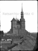 Blick vom Friedhof auf Peterskirche und Vogtshof, Kirche