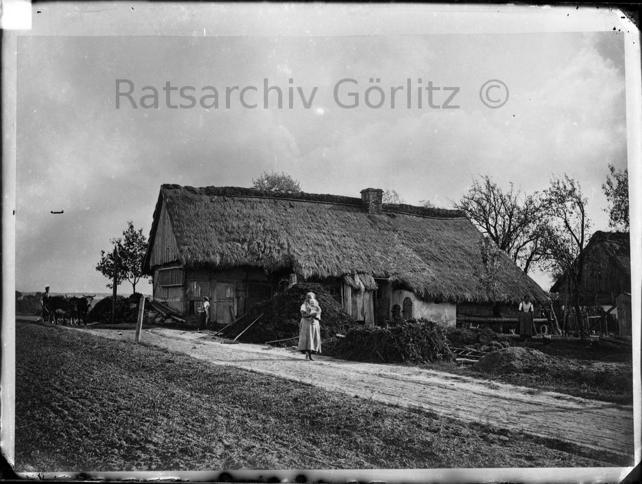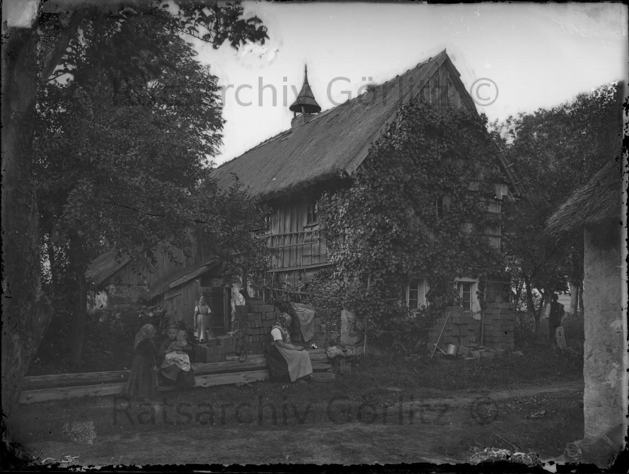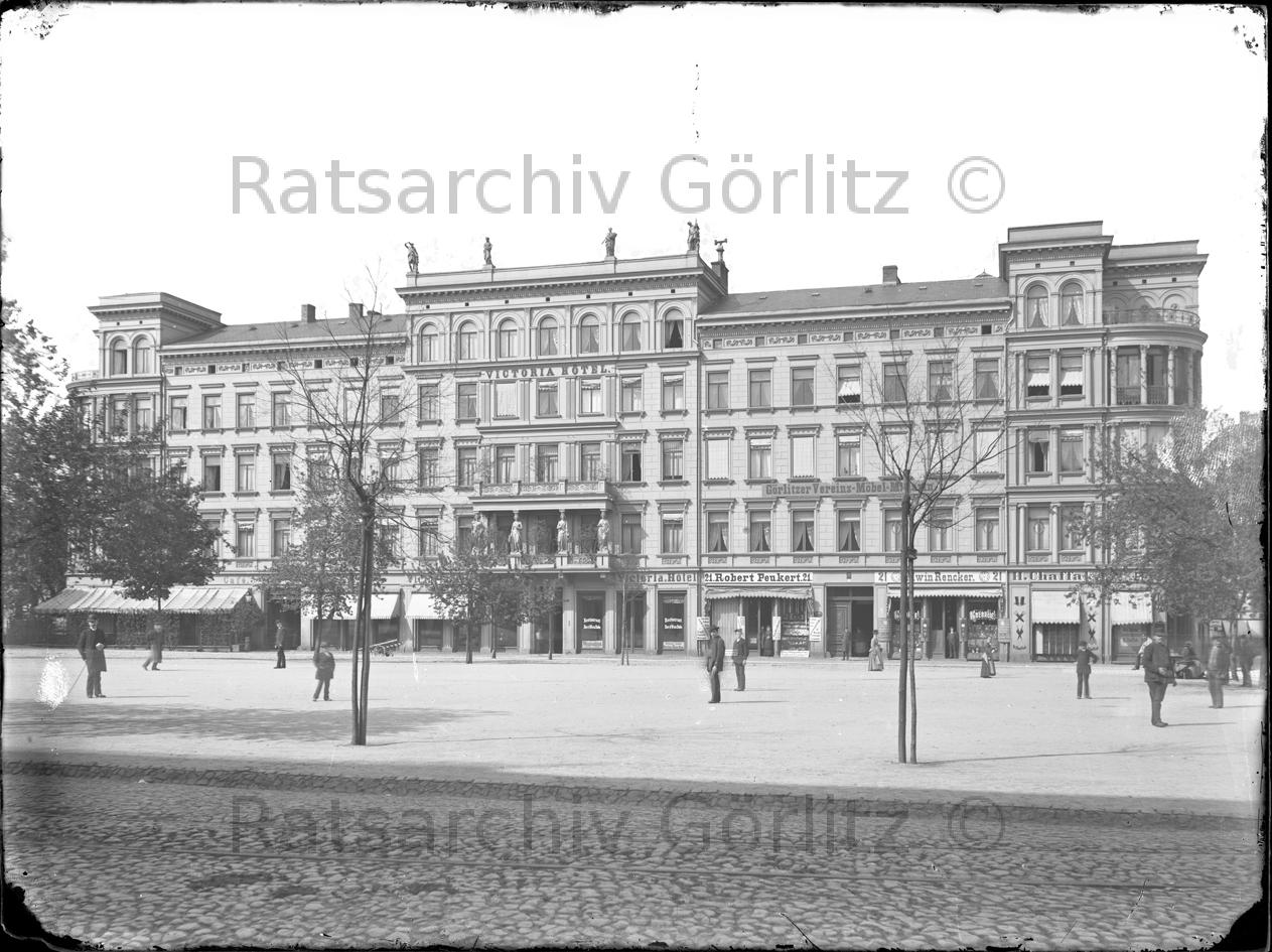 Südseite Untermarkt vor 1882 mit Blick in Neißstraße - Neptunbrunnen, Brunnen